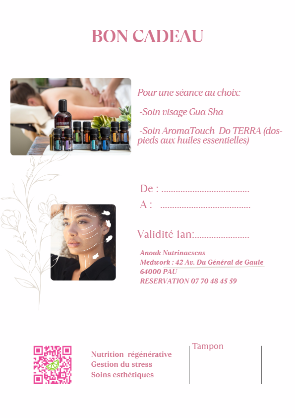 Pour une séance au choix -Soin visage Gua Sha -Soin AromaTouch Do TERRA